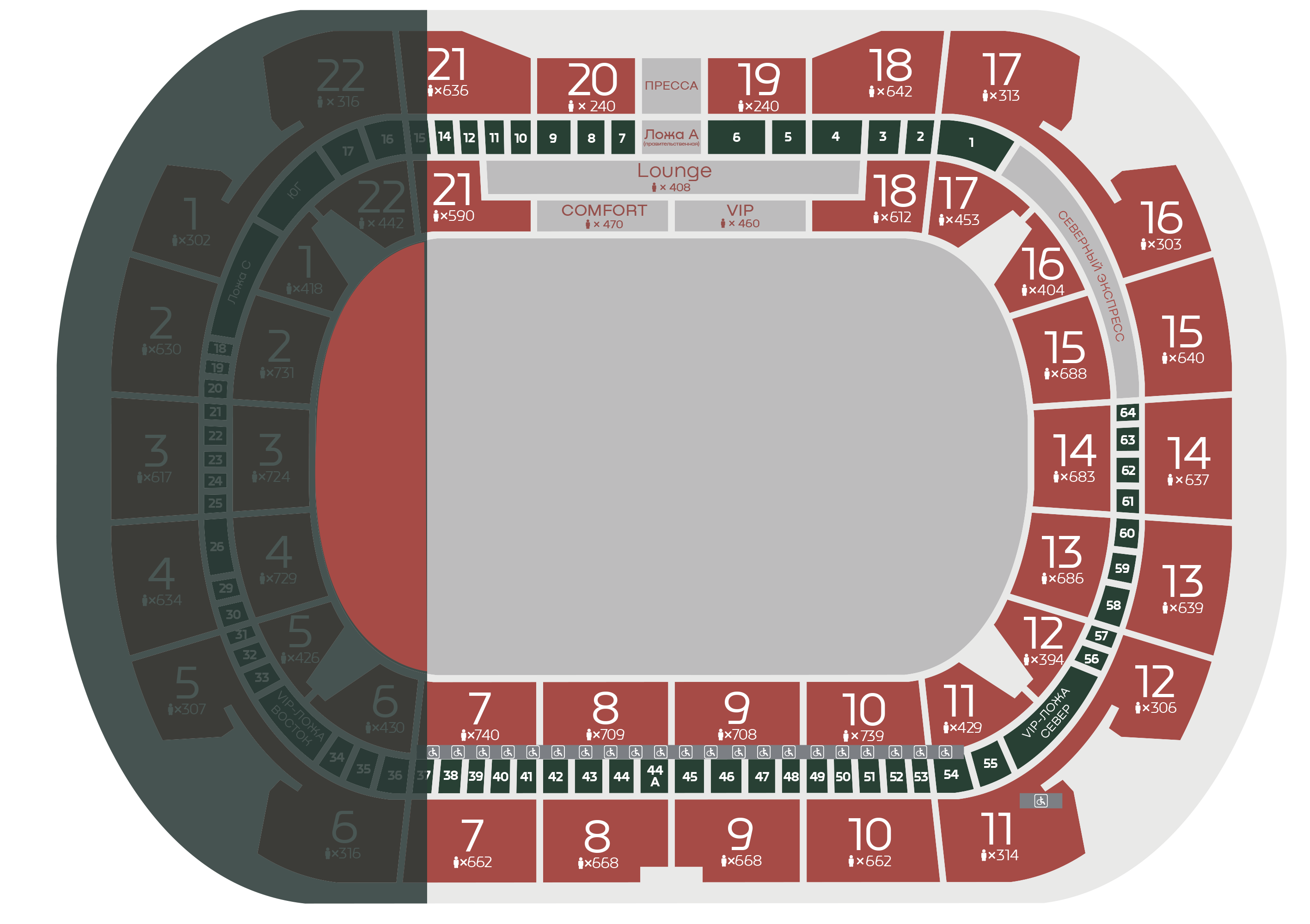 Вместимость трибун